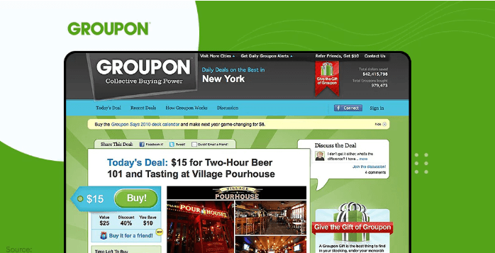 Groupon’s business model was ambitious from the start: a deal would only activate if enough people signed up, which encouraged users to share offers with friends and spread the word.