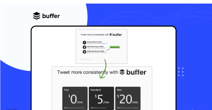 Buffer, a popular tool for scheduling social media posts, started with an MVP that was incredibly simple — just a couple of landing pages.