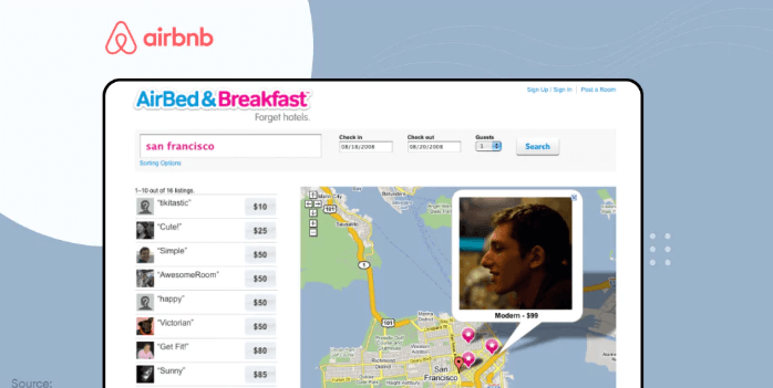 To test their idea, the founders launched a very simple MVP — a basic website with photos of available rooms in San Francisco. During a local conference, attendees started booking those spaces, proving there was real demand.
