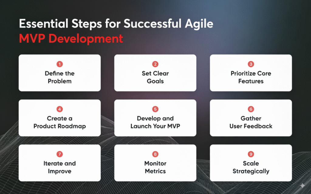 Now that we know what agile MVP development is, let’s walk through the key steps to actually make it happen. These steps help you stay focused, move fast, and build a product that truly connects with your users.