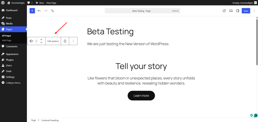You can now edit patterns directly in context, meaning you see your changes live on the actual page while you’re working.