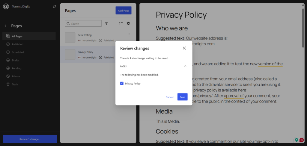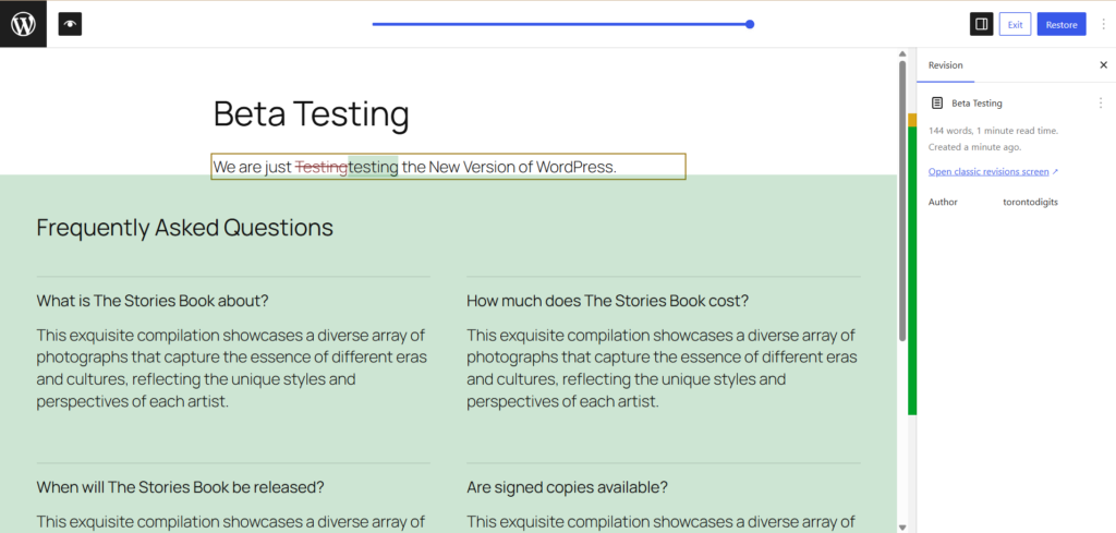 Now, WordPress 7.0 shows visual revision differences directly inside the block editor.